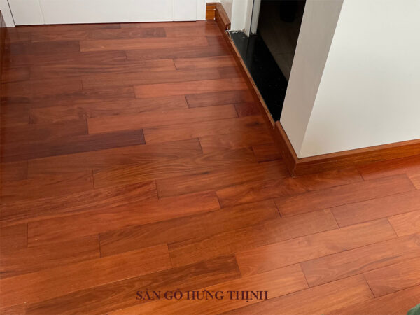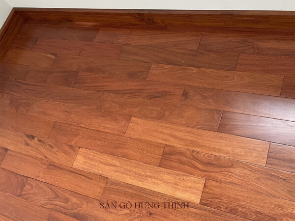- Ván sàn Căm xe có tom gỗ nhỏ rất mịn, bề mặt vân núi và vân kẻ xọc xen kẽ mầu nâu sẫm cánh gián nên sàn gỗ đẹp sang trọng phù hợp với các phong cách thiết kế nội thất khác nhau.